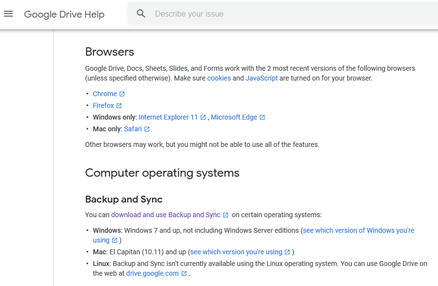 Google Drive 是与 Windows(S 模式下的 7、8、8.1、10 和 10)、Mac、iOS 和 Android 兼容。你不能在 Linux 上“本地”使用它的桌面应用程序,但谷歌正在努力解决这个问题。无论如何,Web 浏览器客户端仍然适用于任何操作系统。