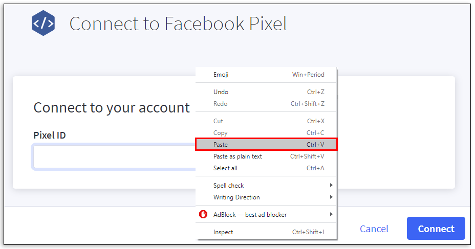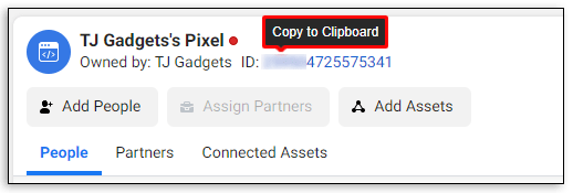 • 复制您的 Facebook 像素 ID(如果您刚刚创建了它,该按钮位于窗口的副标题栏中)