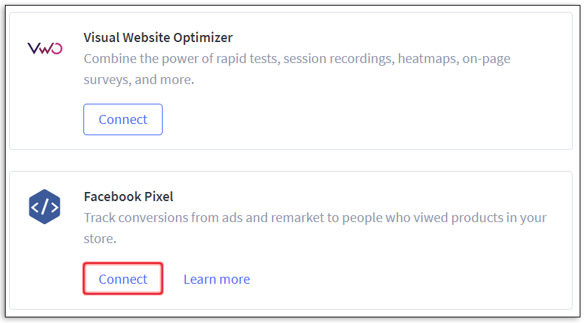 这些步骤将向您的 BigCommerce 仪表板添加一个名为 Facebook Pixel 的新标签。现在,是时候付诸行动了: