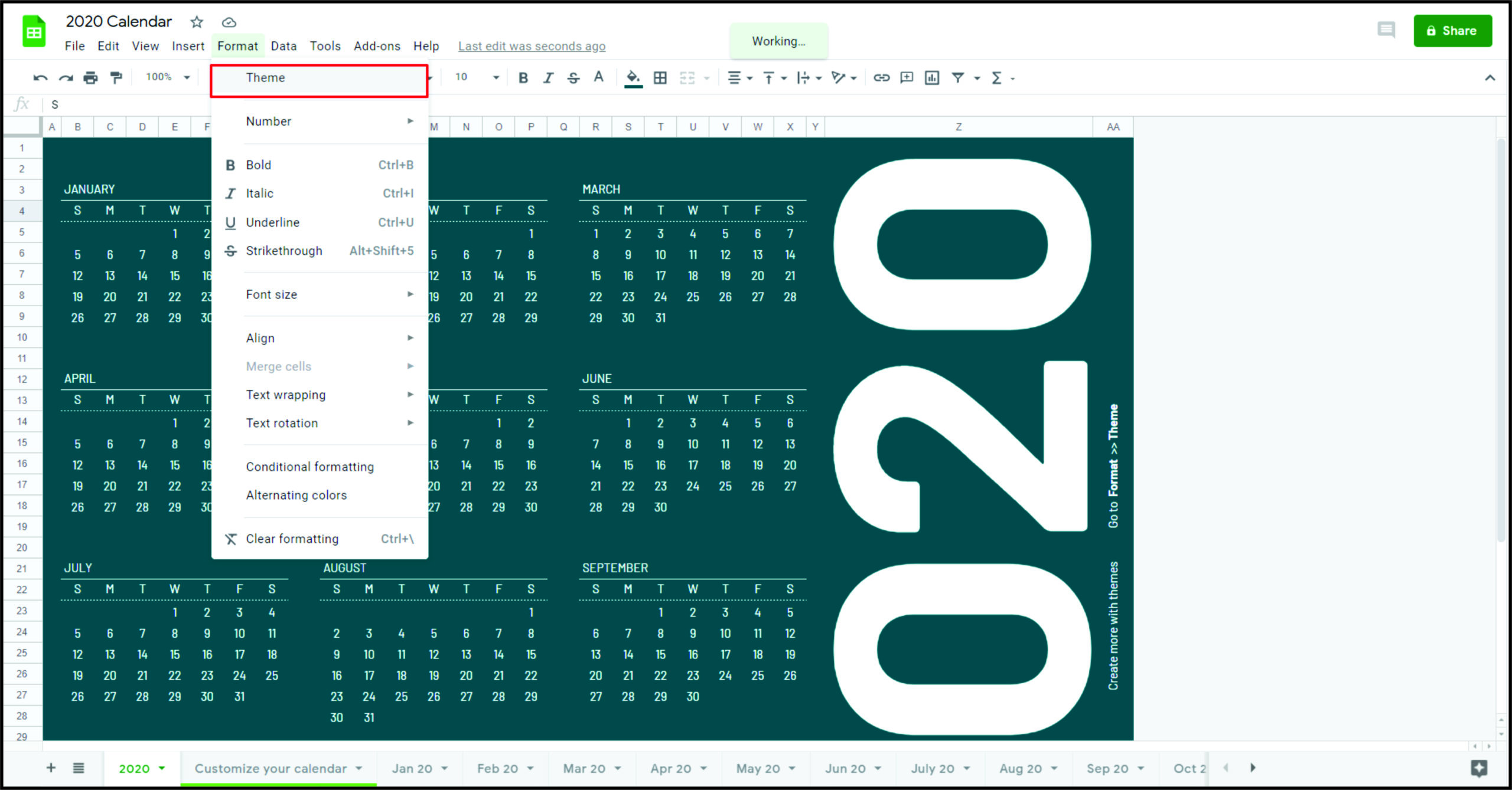 Google 表格工具包中的一项新功能是主题。对于在自定义环境中创建电子表格的用户很有用。对于每个主题,您都可以选择默认字体、颜色、背景等。每当您开始制作新文档时,您都可以打开主题,您的所有调整都会在那里。