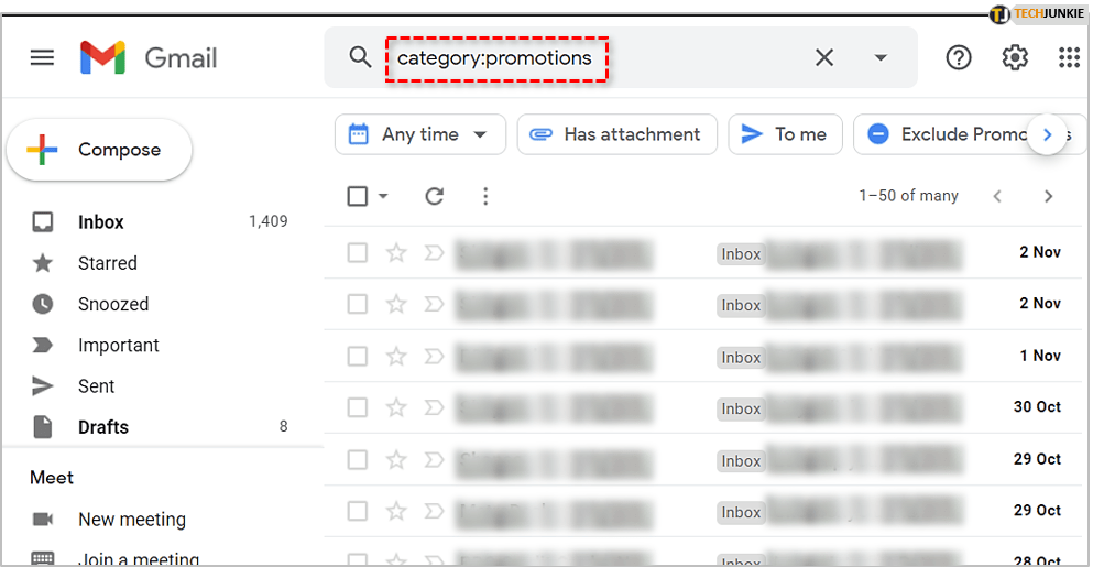 您可以搜索所有促销电子邮件,例如,输入category :promotions 在搜索栏中。将列出所有促销电子邮件,您可以按照本文中提到的相同方法将其删除。
