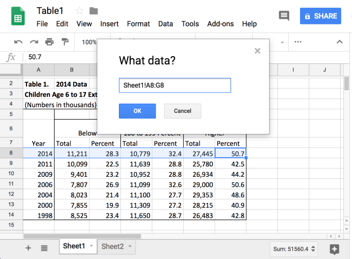 你会在下面的屏幕截图中注意到,在最底部,谷歌问我是否想链接到 census.gov,因为它注意到我从那里获取了这些数据。此功能非常有助于在创建文档时跟踪您的来源。