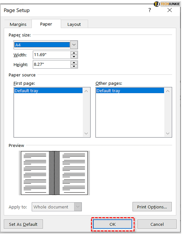 这可以防止小册子在打印后装订时出现混乱的单词。进行调整后,单击“确定”以预览更改。