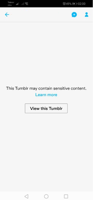 - 当您尝试访问被标记为不安全的博客时,您会收到与该站点桌面版本类似的消息。点按“查看此 Tumblr”按钮。