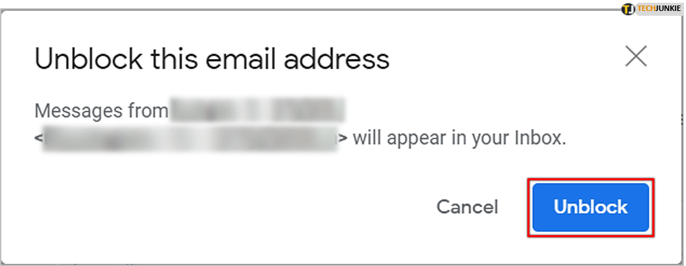 - 点击取消阻止发件人以拉出确认消息。