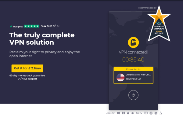 Cyber​​Ghost 得到了一些不错的 IT 出版物的好评和推荐,虽然我自己没有使用过它,但它似乎更胜任这项工作。它适用于 OpenVPN、L2TP-IPsec 和 PPTP 协议,并允许您同时连接多达 7 台设备。
