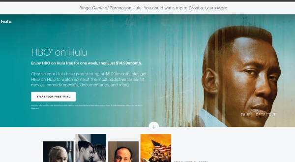 Hulu 订阅了 HBO 作为其阵容的一部分。它的费用为每月 40 美元起,其中包含 HBO 和 Cinemax。通过这种方式,您可以在第 8 季之前尽情享受《权力的游戏》。如果您订阅,您还可以访问 HBO2、HBO 家庭、HBO 拉丁裔、HBO 喜剧、HBO 签名高清、HBO 区。