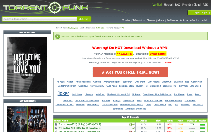 这实际上是一个非常受欢迎的种子网站,它会自行更新以允许发表评论。它们还为您提供了种子的经过验证的状态,但是,评论似乎总是为用户提供更多的安全性。唯一的问题是有很多赞助广告,所以导航可能有点困难和烦人。但是,归根结底,Torrent Funk 为您提供了全新的布局,其中包含无限量的种子供您选择。