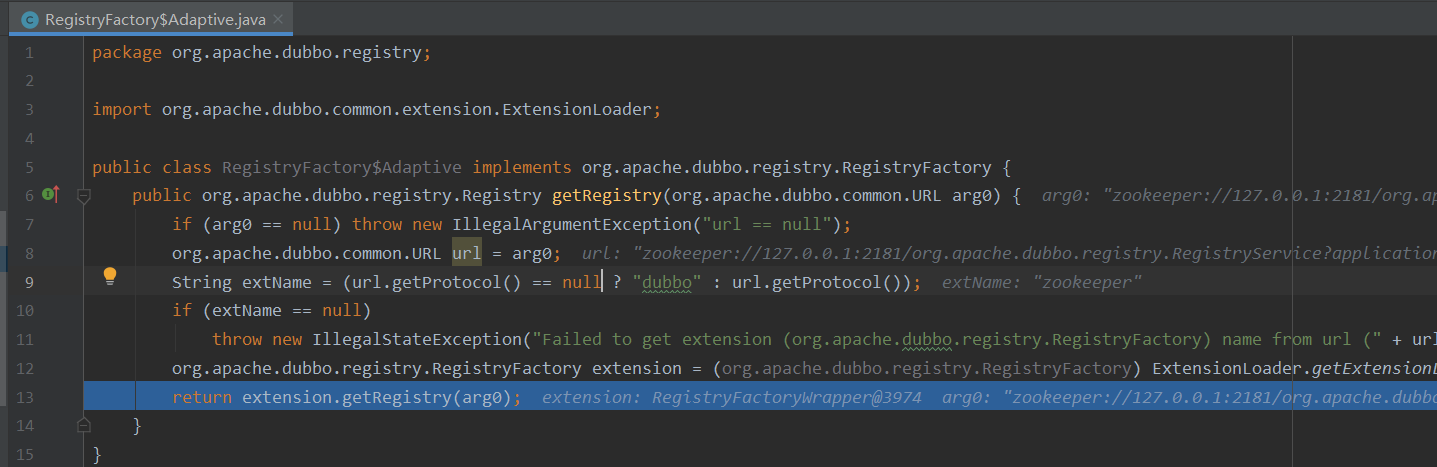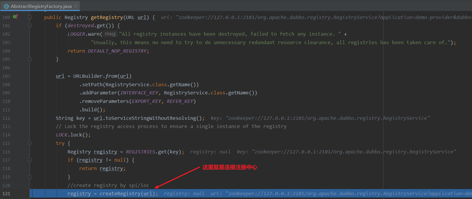 到了下图这里,就是封装了zookeeper注册中心的物件了,我们到这里就不继续往里看了;