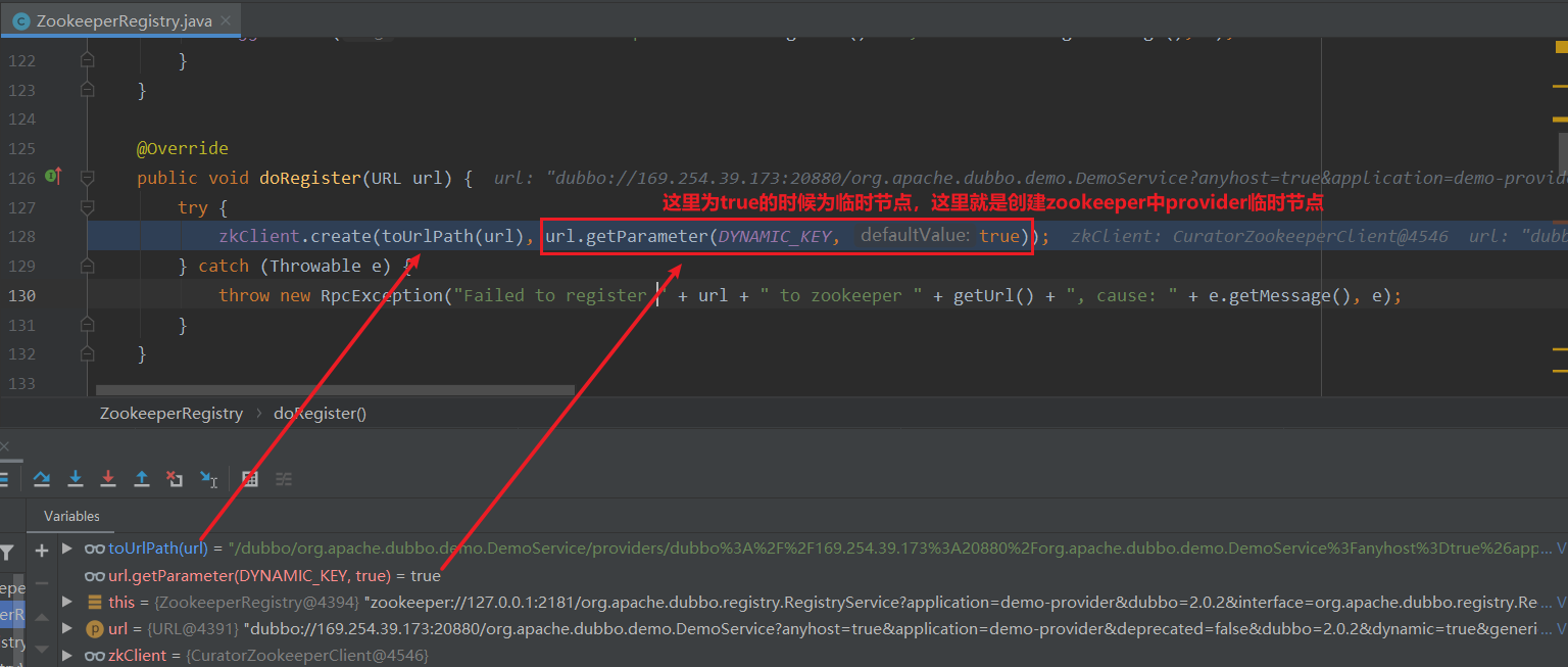 既然上面已经连接连接好了注册中心,现在就开始根据我们的服务信息去zookeeper中创建节点了