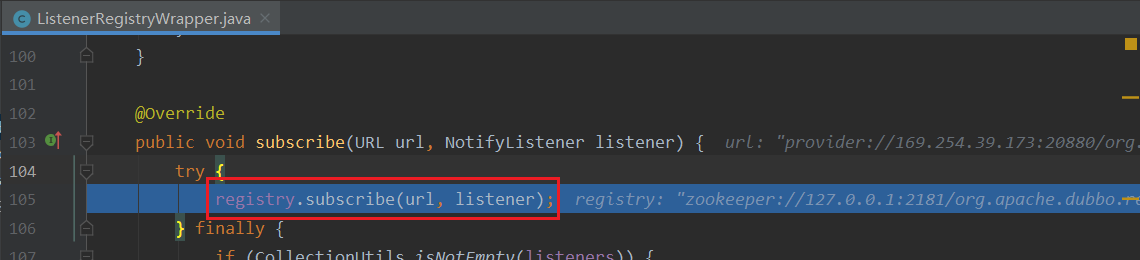 最后就是dubbo订阅zookeeper节点的信息,当服务有资料变化的时候,就会呼叫回呼函式;