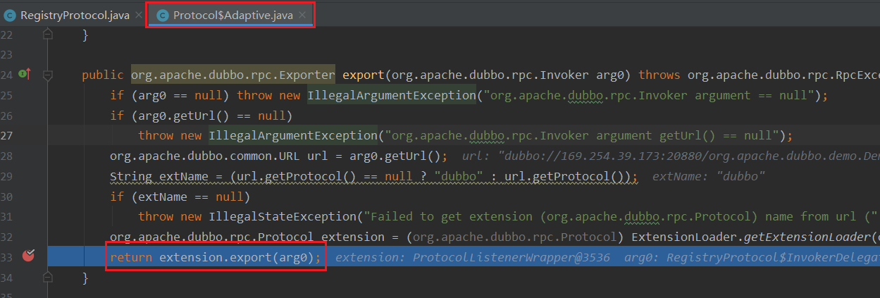 从上图中国protocal.export()方法进入,下面这个类在上一篇博客已经说了,需要我们自己手动创建的