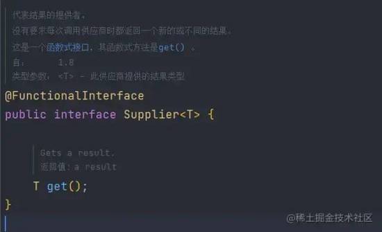 使用注解 @FunctionalInterface 标识,并且只包含一个 抽象方法 的界面是 函式式界面函式式界面 主要分为 Supplier 供给型函式、 Consumer 消费型函式、 Runnable 无参无回传型函式和 Function 有参有回传型函式,