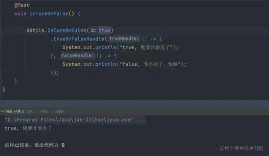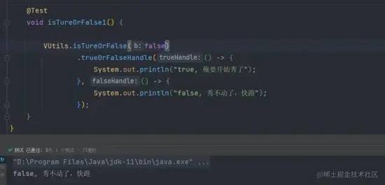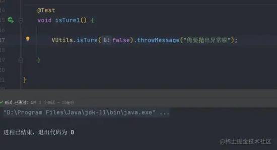 呼叫工具类自变量自变量后,呼叫 函式式界面throwMessage 方法传入例外信息,当出入的自变量为 false 时正常执行