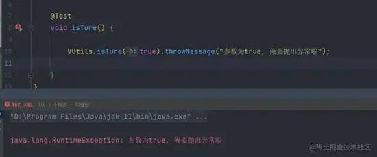 创建工具类 VUtils 并创建一个 isTure 方法,方法的回传值为刚才定义的 函式式界面 - ThrowExceptionFunctionThrowExceptionFunction 的界面实作逻辑为当自变量 btrue 时抛出例外