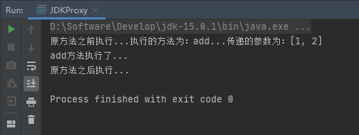 System.out.println("原方法之前执行..."+"执行的方法为:"+ method.getName()+"...传递的自变量为:"+ Arrays.toString(args));