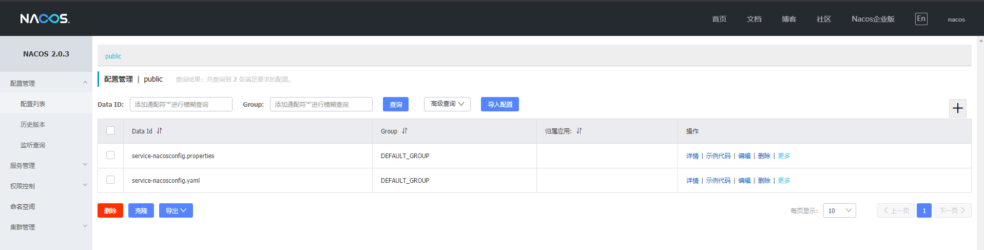 spring.cloud.nacos.discovery.namespace=public