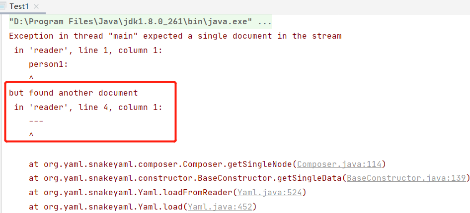 在添加了连接符后,尝试再使用load方法进行决议,报错如下显示发现了另一段yml档案从而无法正常决议: