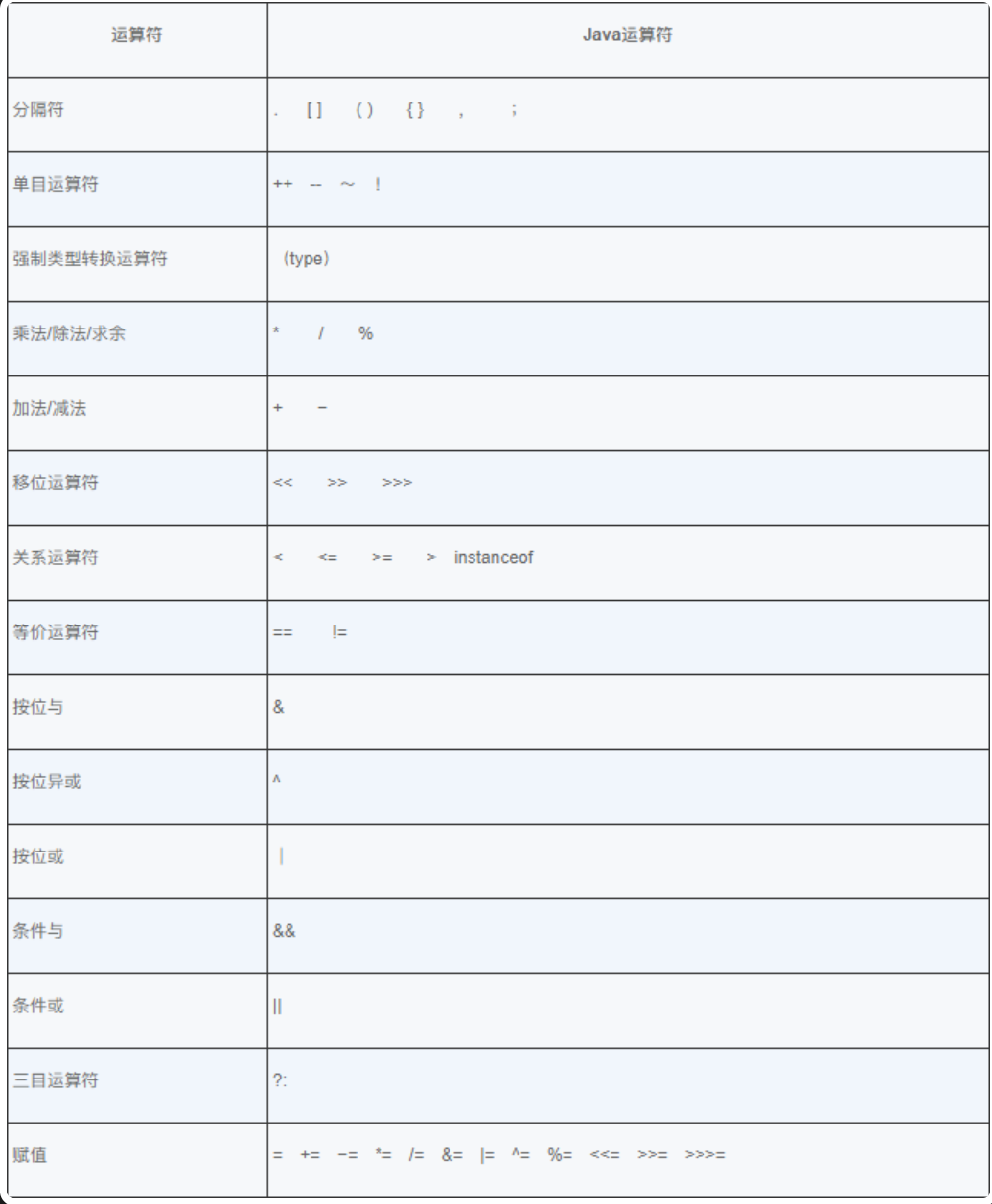 布尔逻辑运算子是最常见的逻辑运算子,用于对布尔型操作数进行布尔逻辑运算,Java 中的布尔逻辑运算子如下图示,
