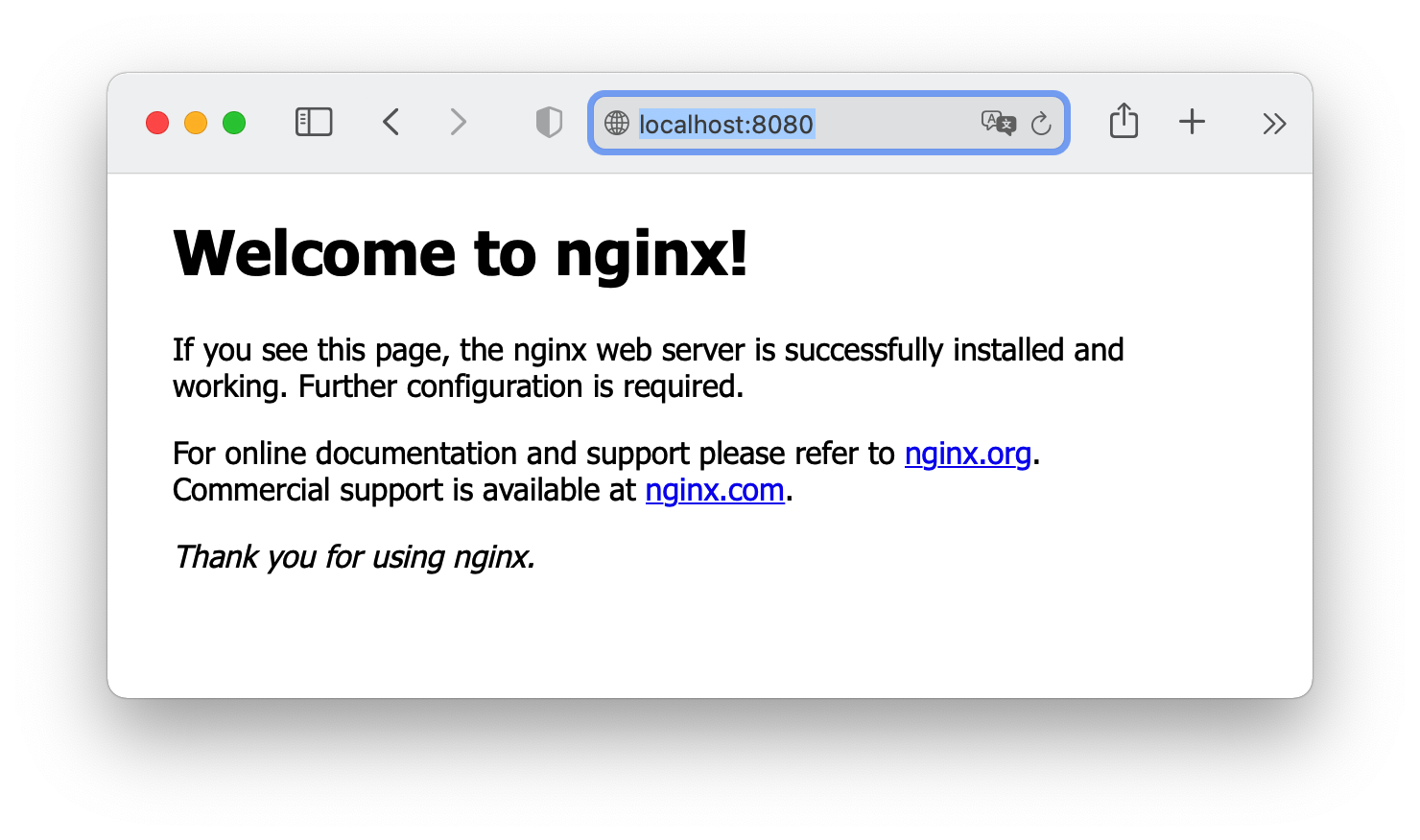 第四步,在浏览器地址栏通过 localhost:8080 访问,可以看到以下欢迎页面,