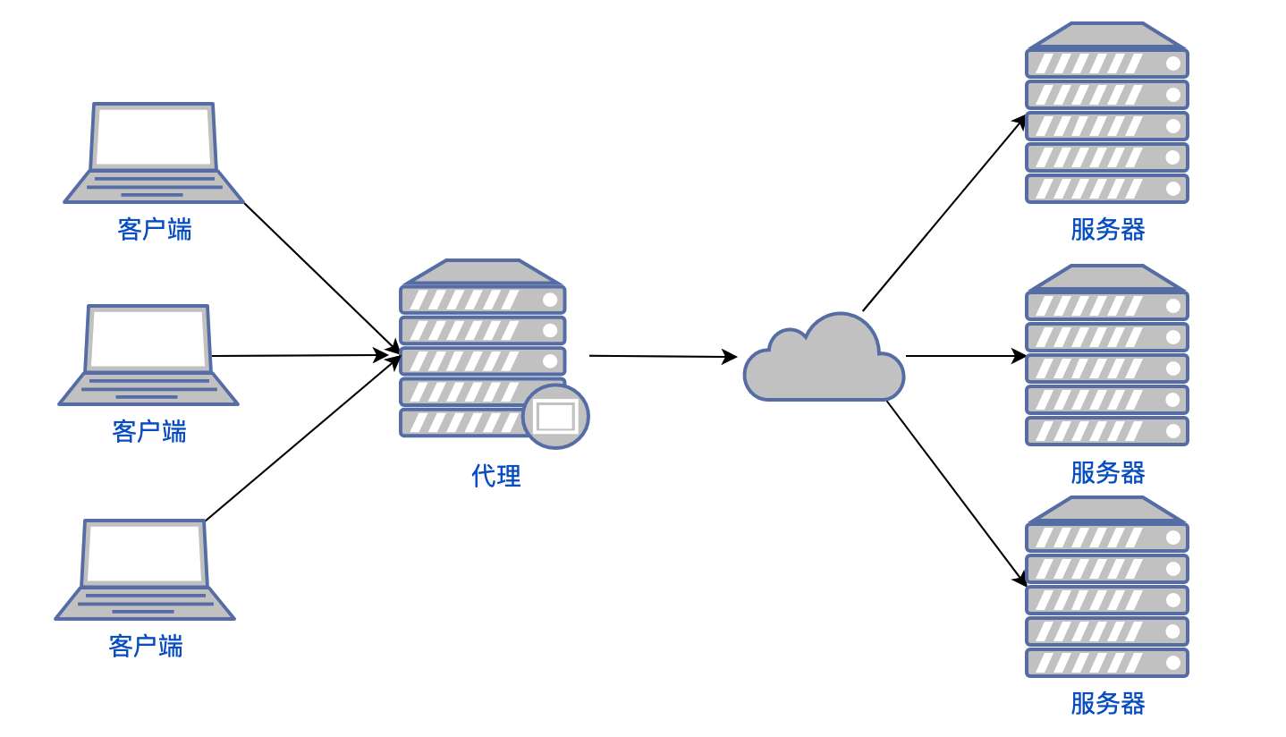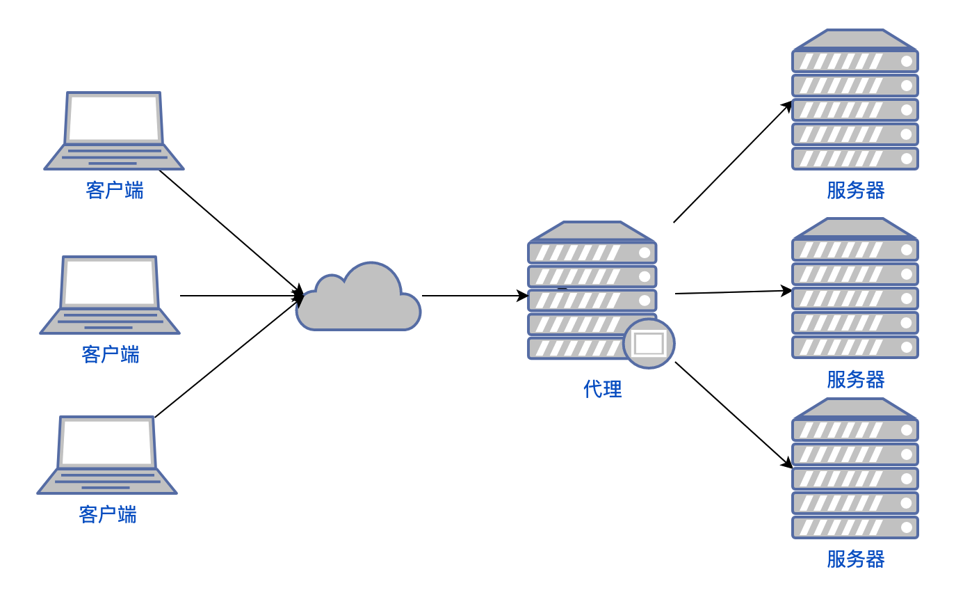 与之相反,反向代理是代理服务器的,让大量的请求均衡地访问到某一台服务器上,