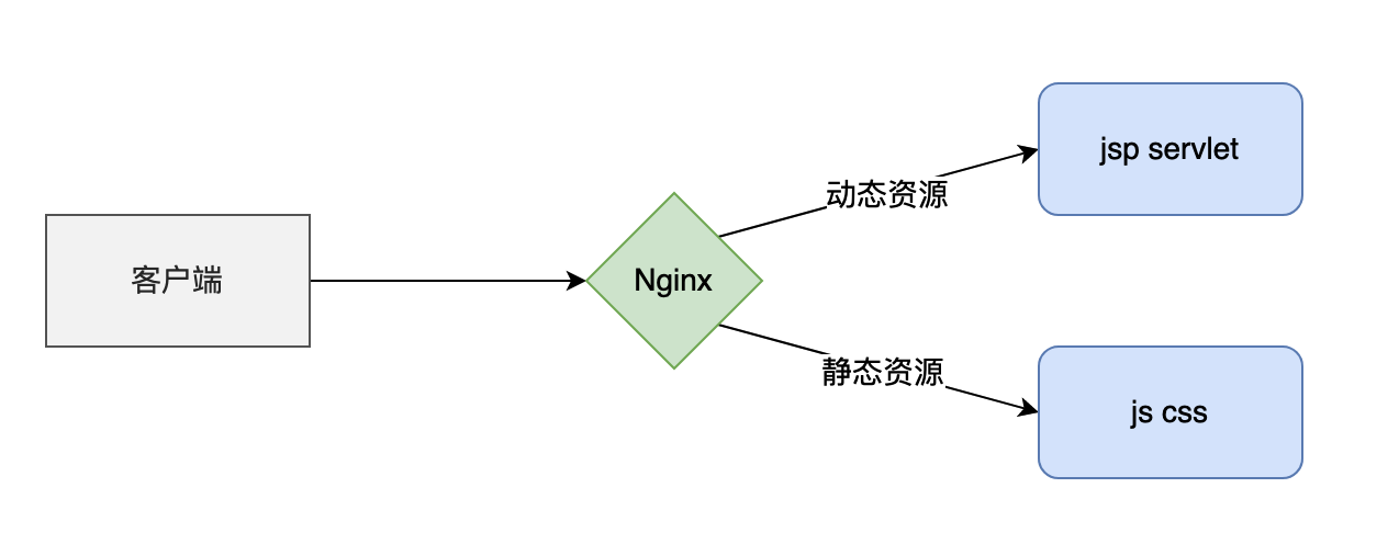 我们可以根据一些规则,把动态资源和静态资源分开,然后通过 Nginx 把请求分开,静态资源的请求就不需要经过 Web 服务器处理了,从而提高整体上的资源的回应速度,