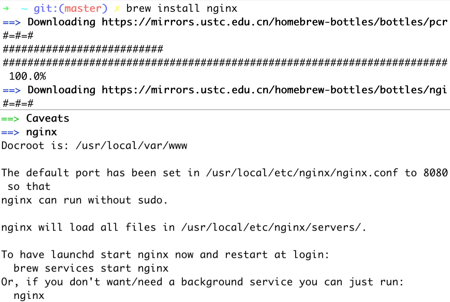第二步,通过 brew install nginx 命令安装 Nginx,