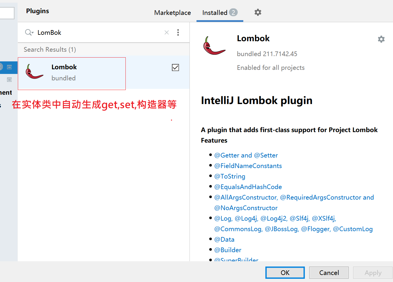 lombok主要解决物体类层的get,set方法,构造器,例外处理;I/O流的关闭操作等等,这些代码没有什么技术含量,又影响着代码的美观,Lombok插件接收解决这些问题的