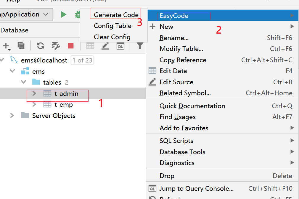 • 右击数据库表=》选EasyCode=》选择GenerateCode