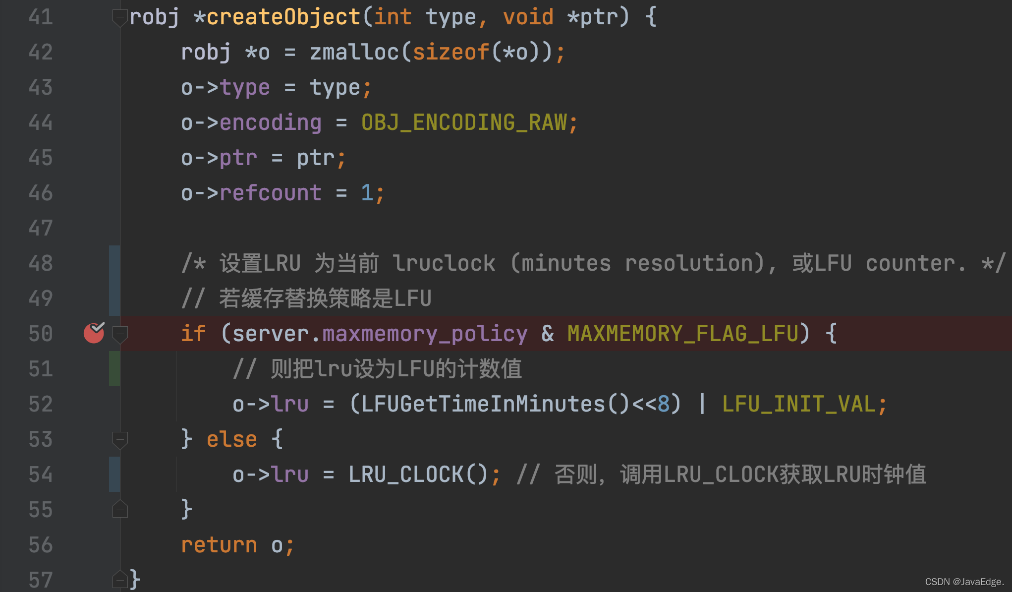 而当maxmemory_policy没有配置为LFU策略时,lookupKey函式就会呼叫LRU_CLOCK函式,来获取当前的全域LRU时钟值,并将其赋值给键值对的redisObject结构体中的lru变量