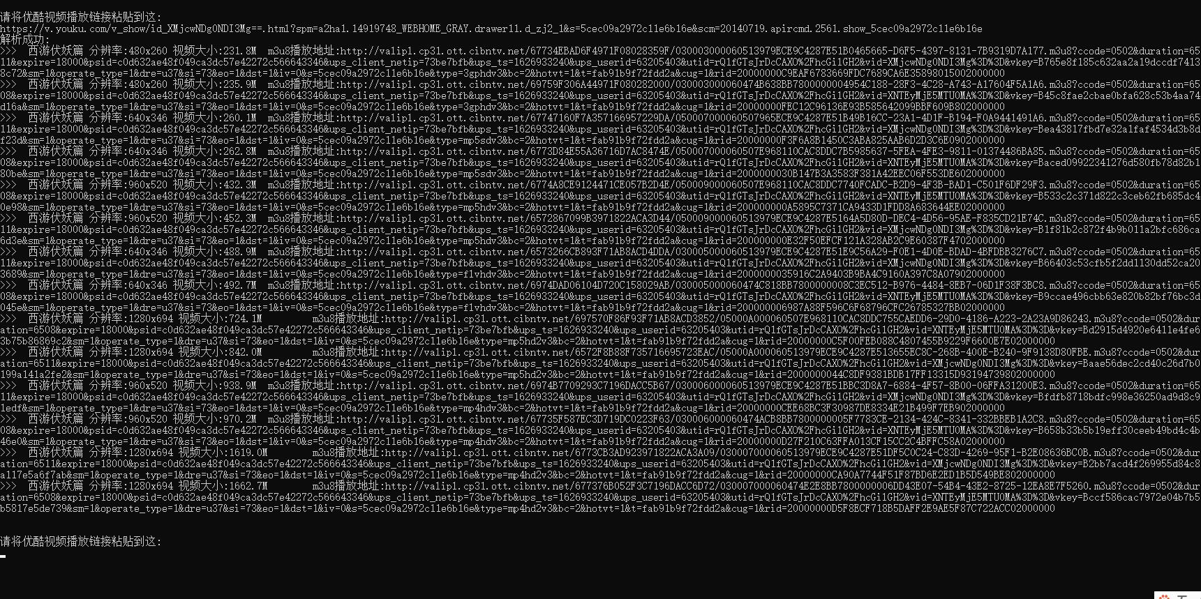 url = input("\n\n请将优酷视频播放链接粘贴到这:\n")