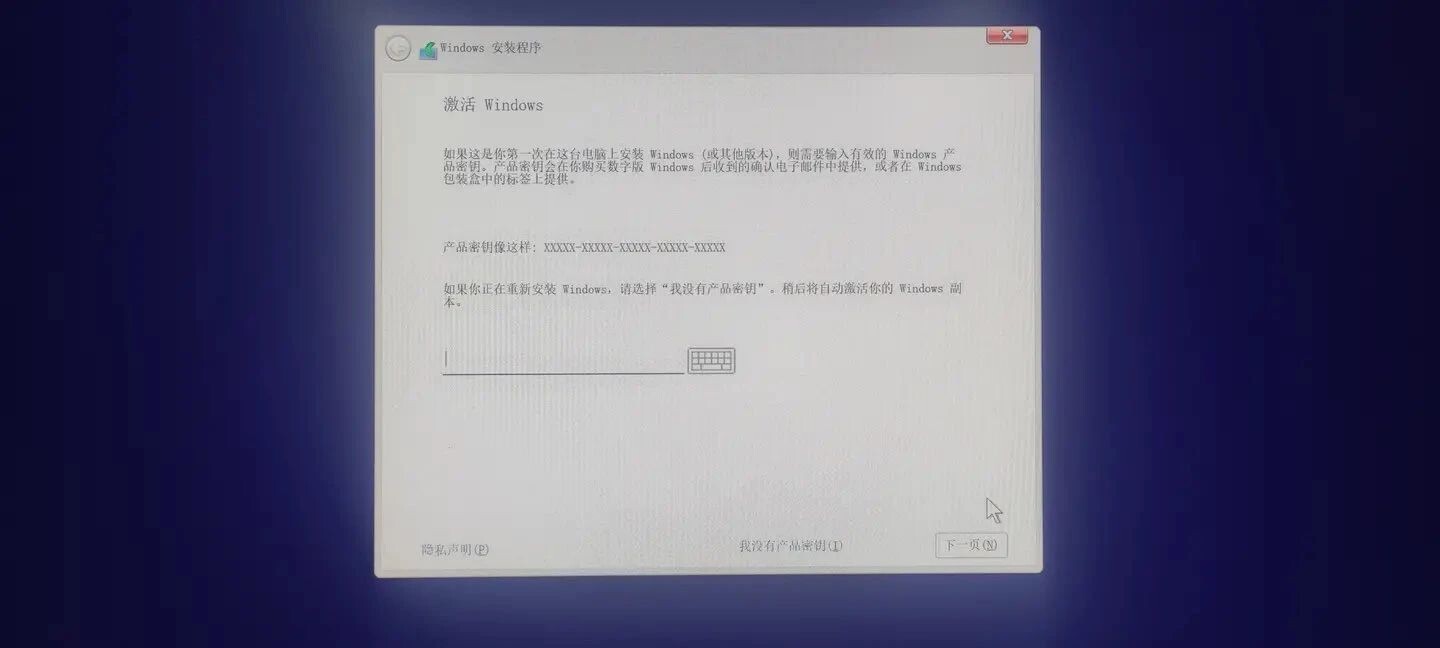 这里可以直接点“我没有产品密钥”,然后点下一页