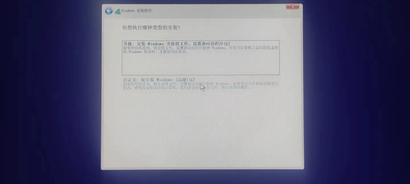 由于是装新系统,所以要选第二项“自定义:仅安装Windows”这一项