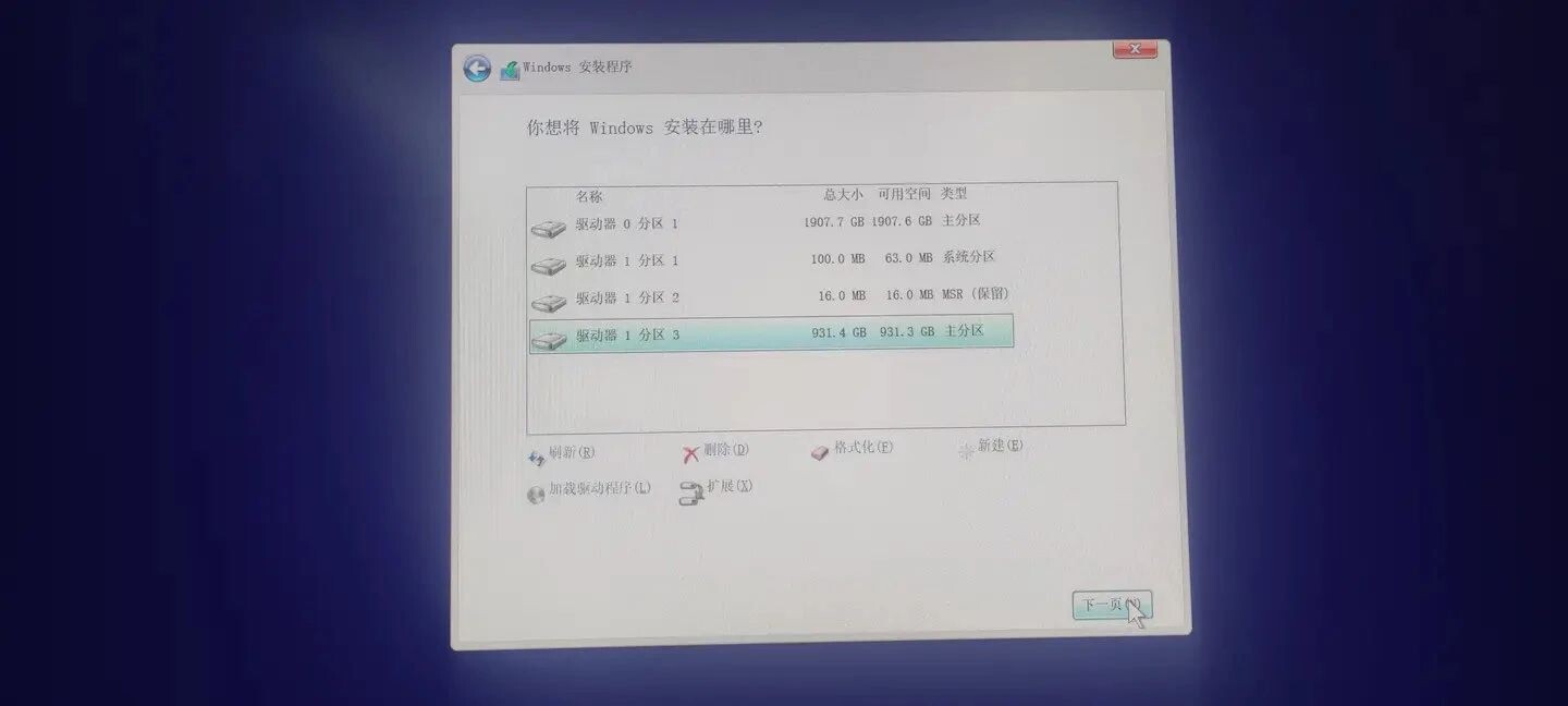 把你要装系统那个磁盘格式化了,然后选择好,点击“下一页”